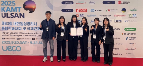 [임상병리학과 재학생 국제학생포럼 학술상 수상] 건양대학교 임상병리학과 재학생들이 2025년 9월 20일(토) 열린 제63회 대한임상병리사 종합학술대회 및 국제컨퍼런스(International Conference) 프로그램의 일환인 국제학생포럼(International Student Forum) 에서 본선에 진출하여 학술상을 수상하였습니다. 본선 무대에 오른 건양대학교 임상병리학과 남수민, 이수연 학생 등 공동 발표팀은 이번 수상은 우리 학과 학생들의 국제적 연구역량과 발표역량을 입증한 성과로, 학과의 위상을 높이고 학생들의 글로벌 경쟁력 강화에 크게 기여하였습니다. 임상병리학과는 앞으로도 학생들이 국내·외 학술대회에 적극 참여하고, 국제교류 활동을 통해 학문적 성취를 넓혀갈 수 있도록 지속적으로 지원할 계획입니다. 많은 관심과 격려 부탁드립니다. |