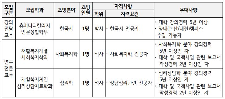 ※ 세부내용은 첨부된 공고문 참조 ※ 위 사항 외 기타 궁금하신 사항은 교원인사팀(☎041-730-5185)으로 연락 주시기 바랍니다. 감사합니다. |
