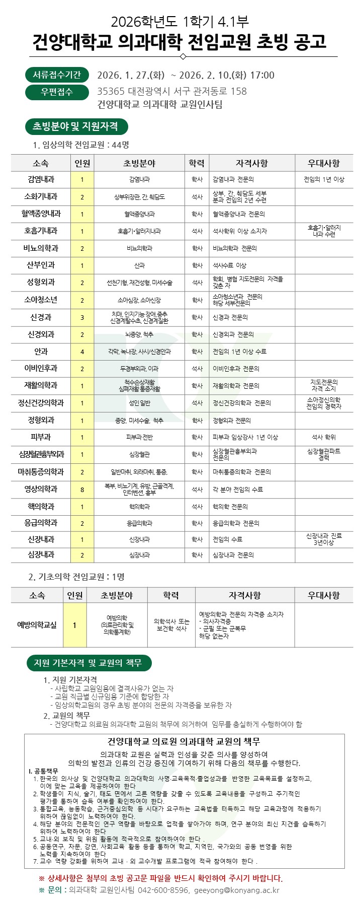 | 작성자 | 의과대학 교원인사팀 | 등록일 | 2026-01-27 | 조회 | 277 |