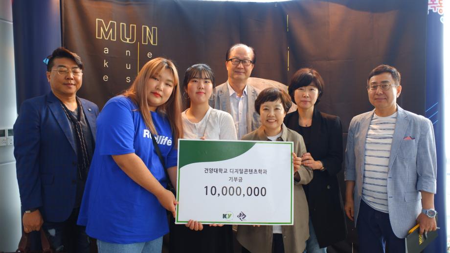 건양대 퇴직교수, 제자 교육 위해 천만원 기부 건양대학교(총장 이원묵) 디지털콘텐츠학과 교수로 재직하다 지난해 8월 퇴직한 구수경 전 교수가 제자들을 위해 1천만원을 기부해 감동을 주고 있다. 구 전 교수는 지난 8일 자신이 속해있던 디지털콘텐츠학과 4학년 재학생들의 졸업작품전을 직접 방문해 1천만원을 전달하는 행사를 가졌으며 이 기부금은 학생들 교육에 쓰일 카메라 및 컴퓨터를 구입하는데 활용될 계획이다. 건양대 디지털콘텐츠학과는 21세기 콘텐츠산업을 이끌어나갈 방송영상ㆍ광고 분야, 공연기획ㆍ홍보 분야를 중심으로 멀티플레이어형 디지털콘텐츠 전문가를 양성하고 있으며 실무 능력을 갖출 수 있는 실용 과목과 콘텐츠를 더욱 풍부하게 해 줄 인문학적 지식의 융합을 통해 다양한 디지털콘텐츠를 개발하고 있다.