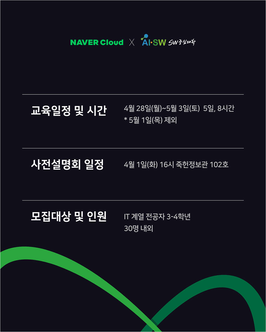 『 [모집] 네이버 클라우드 아카데미 2기 모집 안내 』글의 상세내용을 확인하는 표로 제목, 부서명, 등록일, 조회, 첨부, 내용으로 나뉘어 설명합니다.